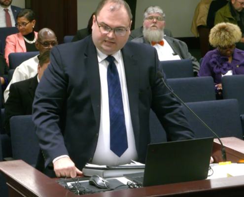 FJRI President William Large testifying against SB 408 by Sen. Grall in the Senate Regulated Industries Committee. – January 20, 2026