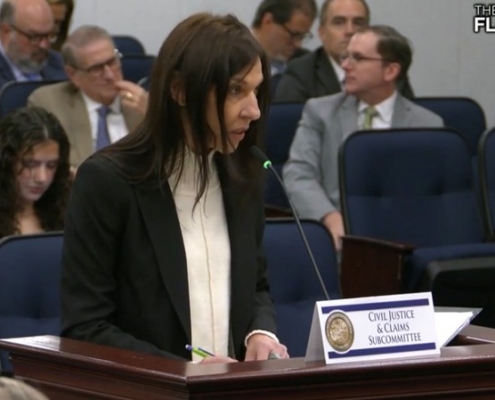 FJRI retained attorney Laurette Balinsky testifying against PCS for HB 1553 before the House Civil Justice & Claims Subcommittee. January 29, 2026.