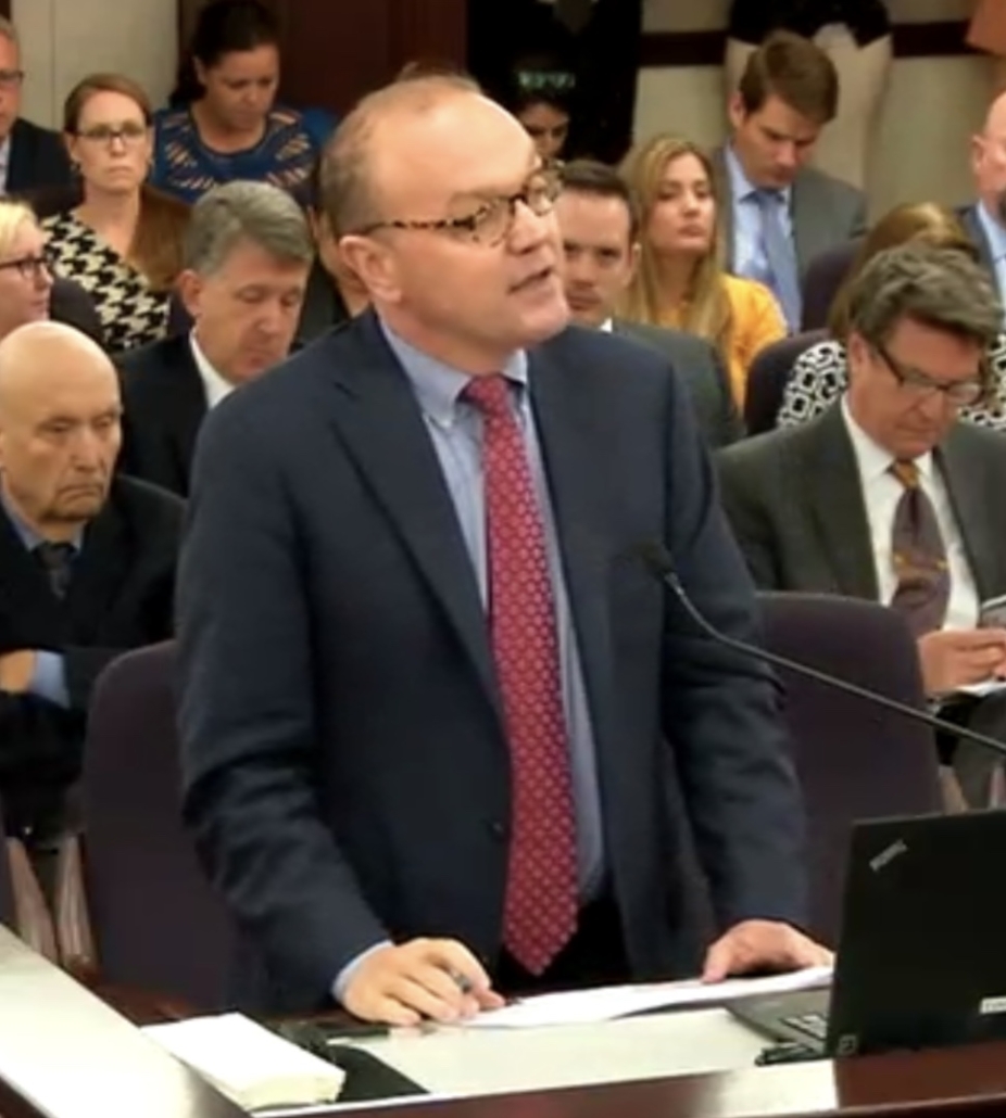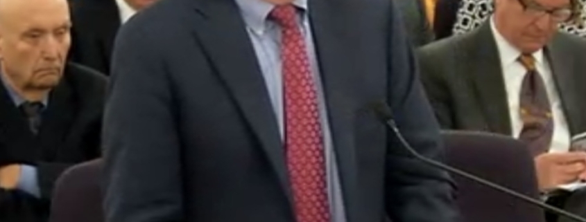 FJRI President William Large testifying before the Senate Banking & Insurance Committee against SB 1684 by Sen. Farmer, dealing with Insurance Rates and Assignment of Benefits. – April 3, 2017