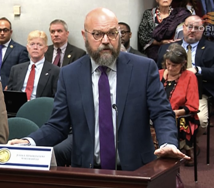 FJRI President William Large testifying before the House Justice Appropriations Subcommittee opposing HB 337 by Rep. Leek – Courts. – April 2, 2019