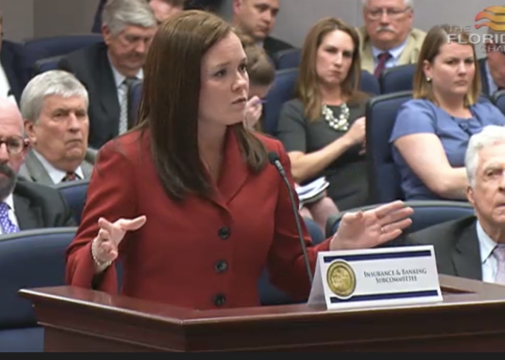FJRI-retained attorney Kim Fernandes testifying before the House Insurance & Banking Committee against HB 7085 — Workers’ Compensation by Rep. Burgess. – March 7, 2017