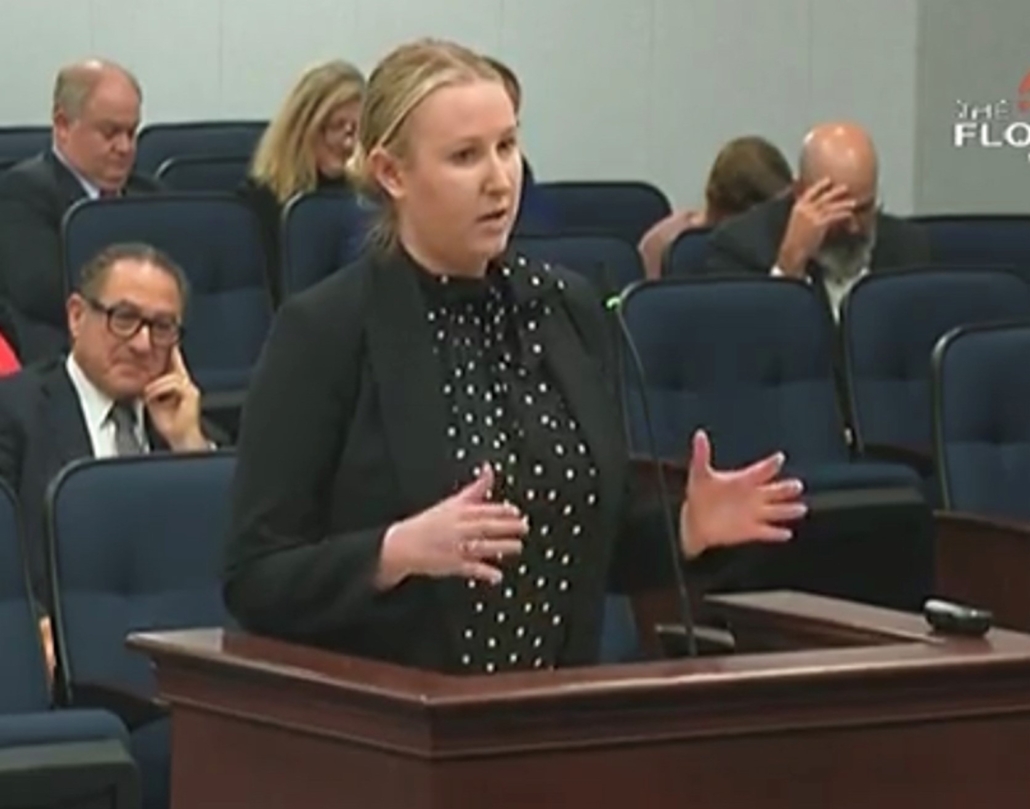 FJRI-retained attorney Victoria Cribb testifying before the House Judiciary Committee in favor of CS/CS/HB 85 by Rep. Snyder – Causes of Action Based on Improvements to Real Property. – March 14, 2023