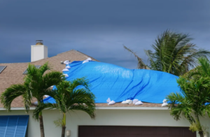 A blue tarp covers a roof after a recent Florida hurricane. A state senator has filed a bill that aims to get policyholders paid by their insurers more quickly,, but insurance experts say it will do more harm than good. (Florida Foundation Authority/RJ Group, Inc.)